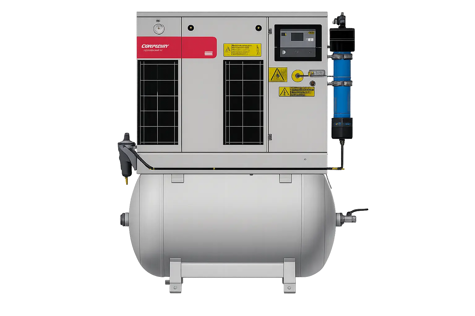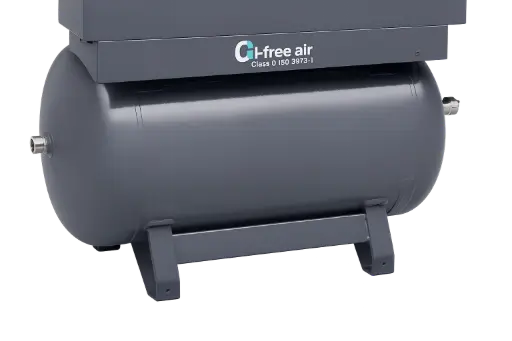 Der integrierte Druckluftbehälter gleicht Druckschwankungen aus und sorgt für eine stabile Versorgung des Druckluftnetzes.