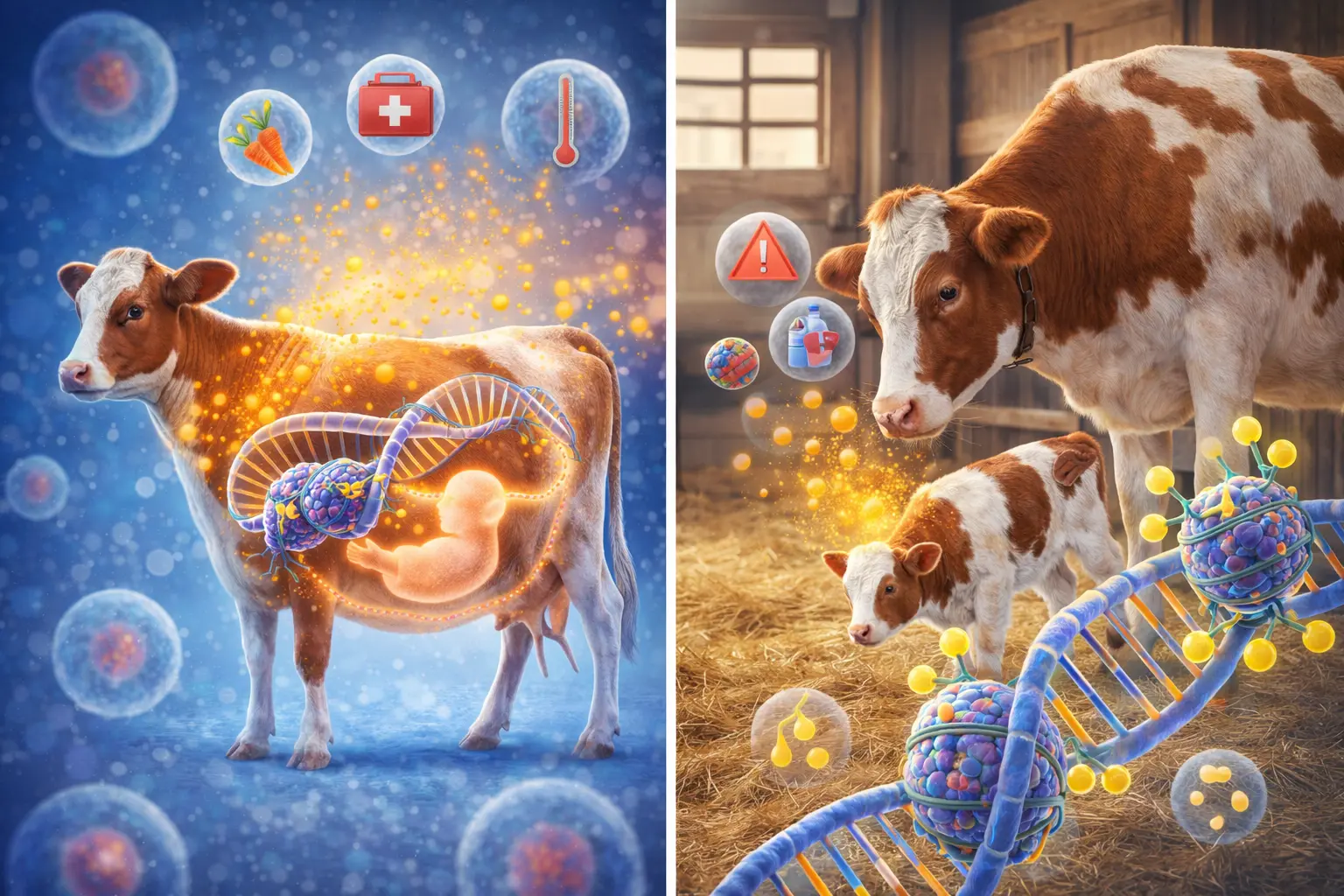 Stressfaktoren wie Hitze, Überbelegung oder Krankheiten erhöhen das Cortisolniveau der Kuh und verändern die Genaktivität des Fötus – mit Folgen wie metabolischen Problemen, geringerer Krankheitsresistenz oder reduzierter Milchleistung im späteren Leben.